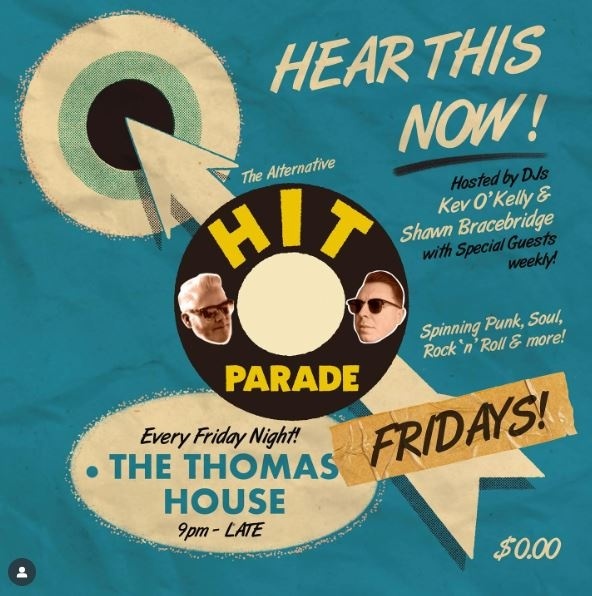 The Alt Hit Parade gets a regular weekly slot upstairs The Thomas House on Fridays with a main cast of Kev O'Kelly and Shawn Bracebridge spinning Punk, Soul, Rock N’ Roll & more on vinyl with frequent guest stars joining them on the decks. 🎶